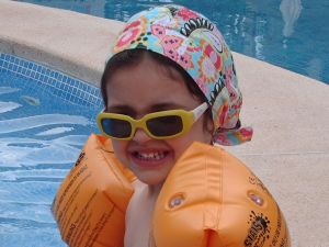 Im Freibad musste Papa Heute mit Entsetzen feststellen, dass ich das Schwimmen verlernt habe. Maman und ich waren fast seit 4 Monaten nicht beim Babyschwimmen. Im Babybecken plansche und spiele ich gerne, aber sobald mir Papa die Schwimmflügel anzieht und mich ins Nicht-Schimmer-Becken mitnimmt, wo ich den Boden unter meinen Füßen vermisse, fange ich an zu meckern.