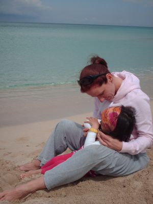 Aujourd’hui on a fait une longue promenade au Parc GRUGA. Une fois je n’ai pas fait attention et paaaf, suis tombée du toboggan sur le sable froid et ma lèvre supérieure n’a pas arrêté de saigner. Mais Maman m’a prise dans ses bras et m’a consolée. Ensuite on a été dans la salle de jeux et là-bas aussi j’étais imprudente et suis tombée deux fois. Plus tard j’avais le visage couleur arc en ciel, tout d’abord, rouge, ensuite, jaune, vert, bleu et finalement violet.